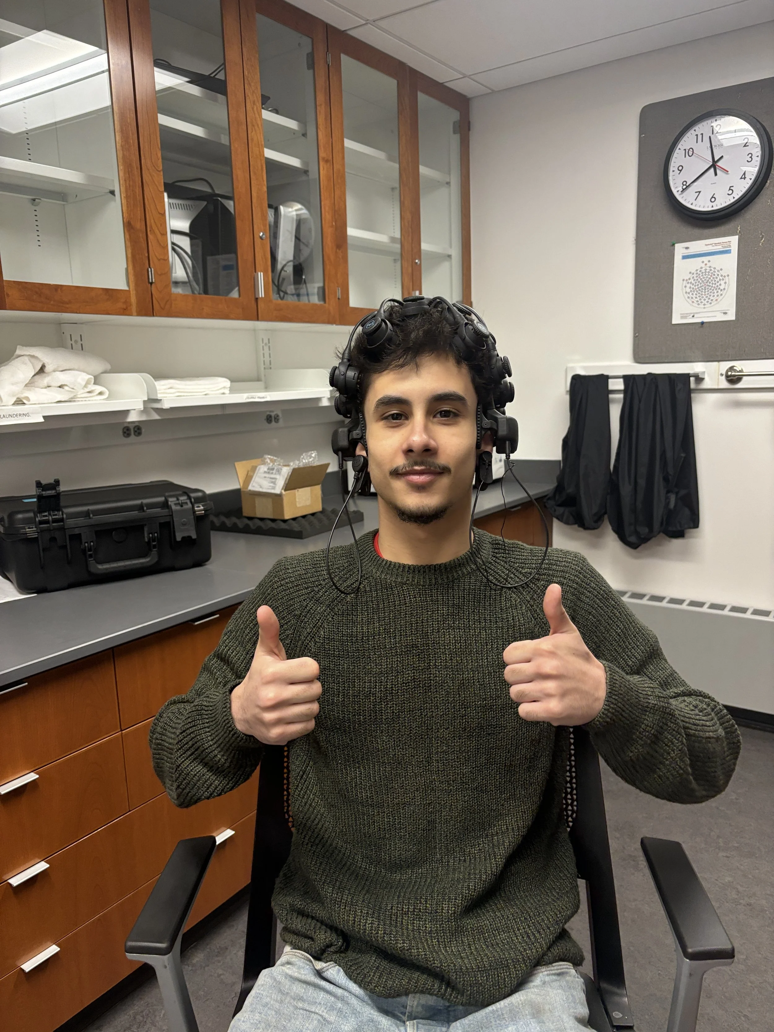 Along the way, I learned how to schedule and recruit participants, record EEG data, interpret ERP signals like the P170 and P300, and think critically about what brain activity can (and can’t) tell us about complex ideas like agency. We didn’t fully replicate the original findings, which taught me a lot about the realities of research and why replication matters.