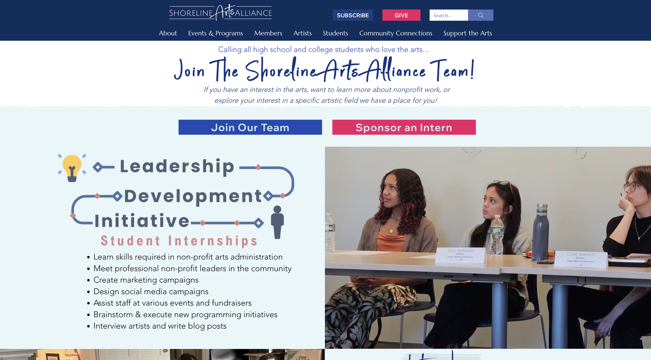 As part of my internship, I led a comprehensive redesign of the Shoreline Arts Alliance website to align more closely with the organization’s mission and audience needs.
